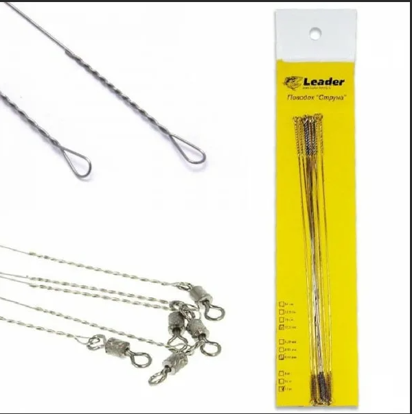 Поводок СТРУНА LEADER оснащ. усил. вертл. d-0,33мм. 15см-12кг(уп/10шт)